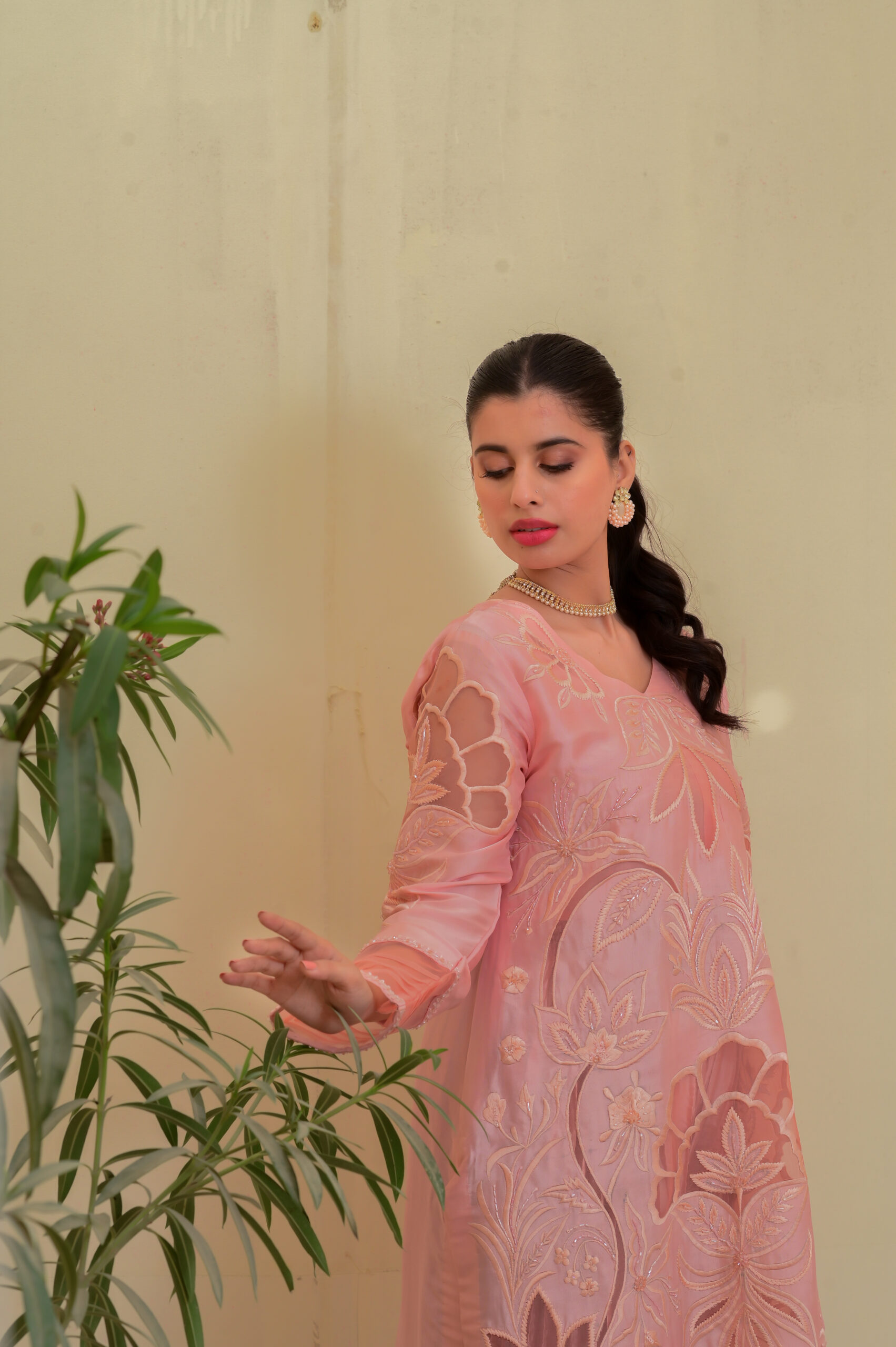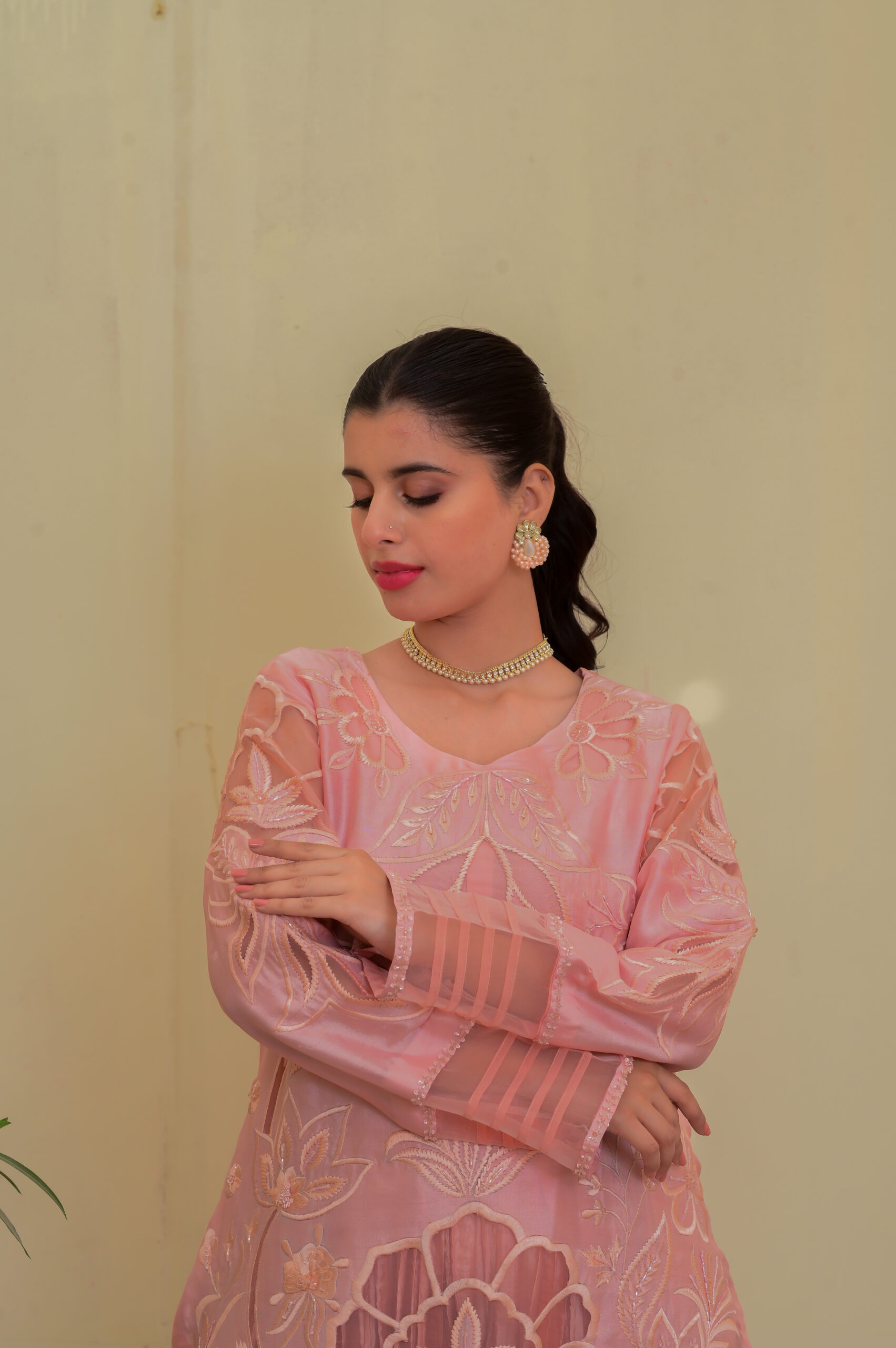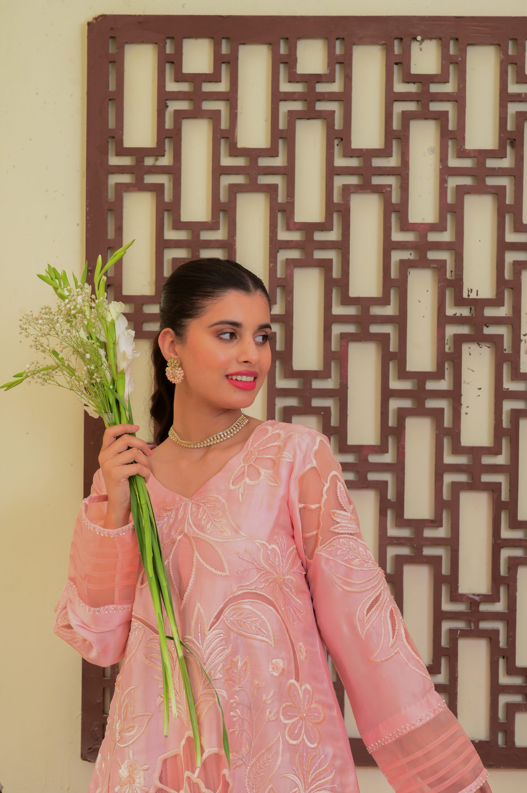 ‘Gul’ is a poetic masterpiece that embodies feminine grace and timeless sophistication. Crafted in dreamy soft pink hues, the ensemble is brought to life with intricate floral embroidery, each stitch reflecting artistry and finesse. Delicate detailing enhances its charm, creating a harmonious balance of elegance and refinement. Designed for the modern muse, this look seamlessly blends tradition with contemporary aesthetics, making it a statement of effortless beauty. Ethereal yet commanding, ‘Gul’ is not just an outfit—it is a vision of class, grace, and everlasting allure