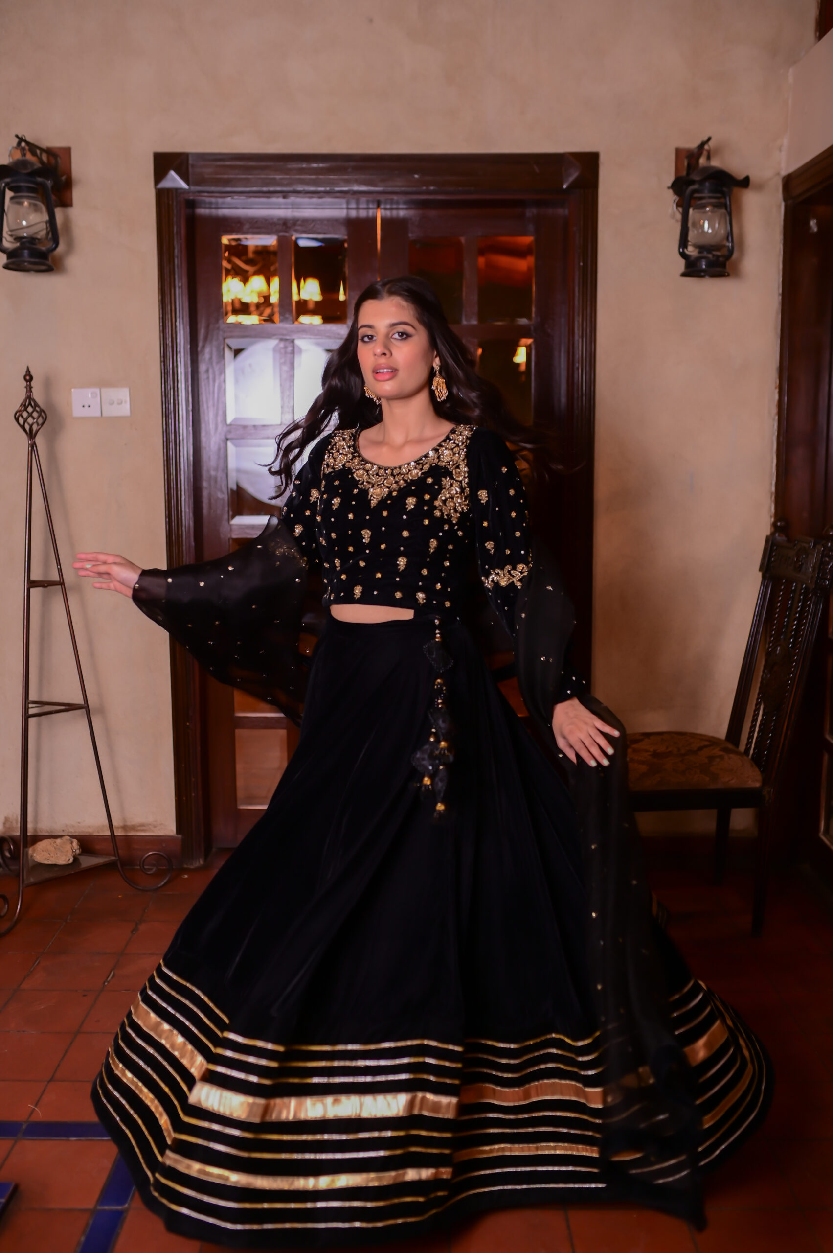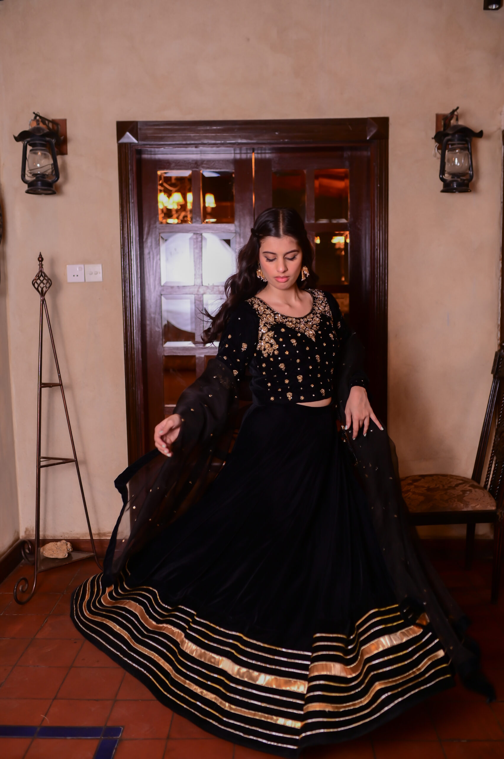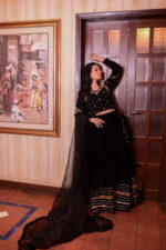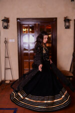 Draped in midnight elegance, where every thread whispers stories of grace and grandeur — this creation embodies the timeless allure of black and the regal charm of gold. A seamless blend of tradition and modernity, it flows like poetry in motion, celebrating femininity with every swirl and shimmer. Crafted for the woman who carries the stars in her eyes and the universe in her soul, this ensemble isn’t just attire — it’s an expression of effortless luxury, confidence, and charm. Let your presence speak before words do, and let your style be the echo of eternal sophistication.